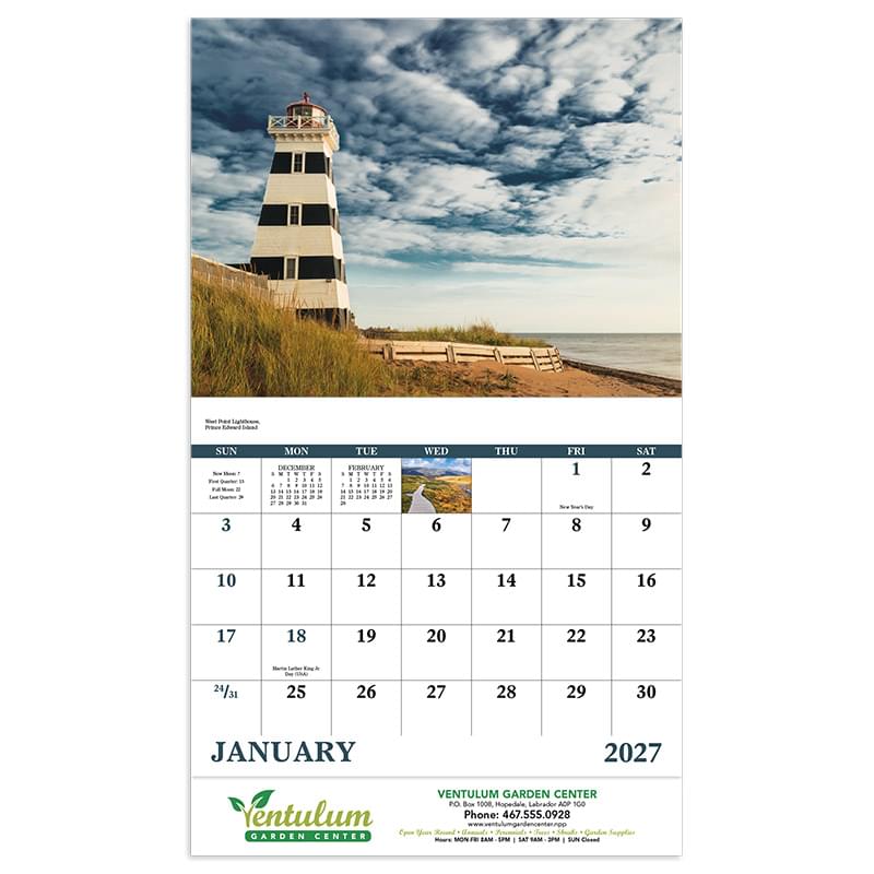 A 13-month journey across Canada's majestic Atlantic region.13-Month calendar with December month printed on backmount Gloss Paper Stock with UV Coated CoverHigh-quality ImageryIncludes Nova Scotia, Newfoundland, New Brunswick & Prince Edward Island