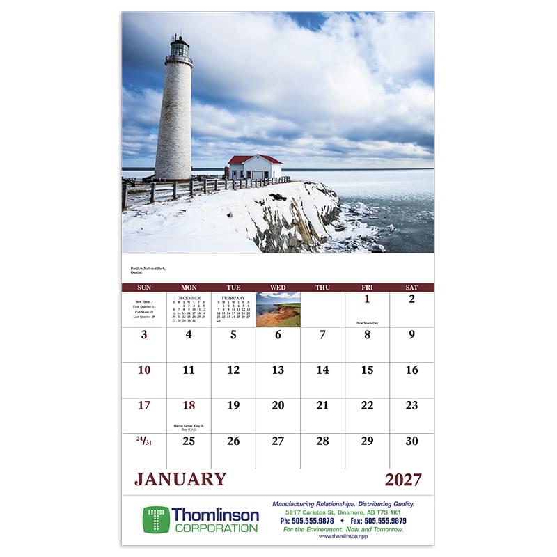 Explore the rugged beauty of Canada's National Parks13-Month calendar with December month printed on backmount Gloss Paper Stock with UV Coated CoverHigh-quality Imagery