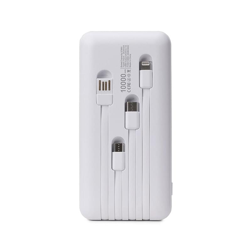 10000mAh Polymer Power Bank with Build-In Charging Cables